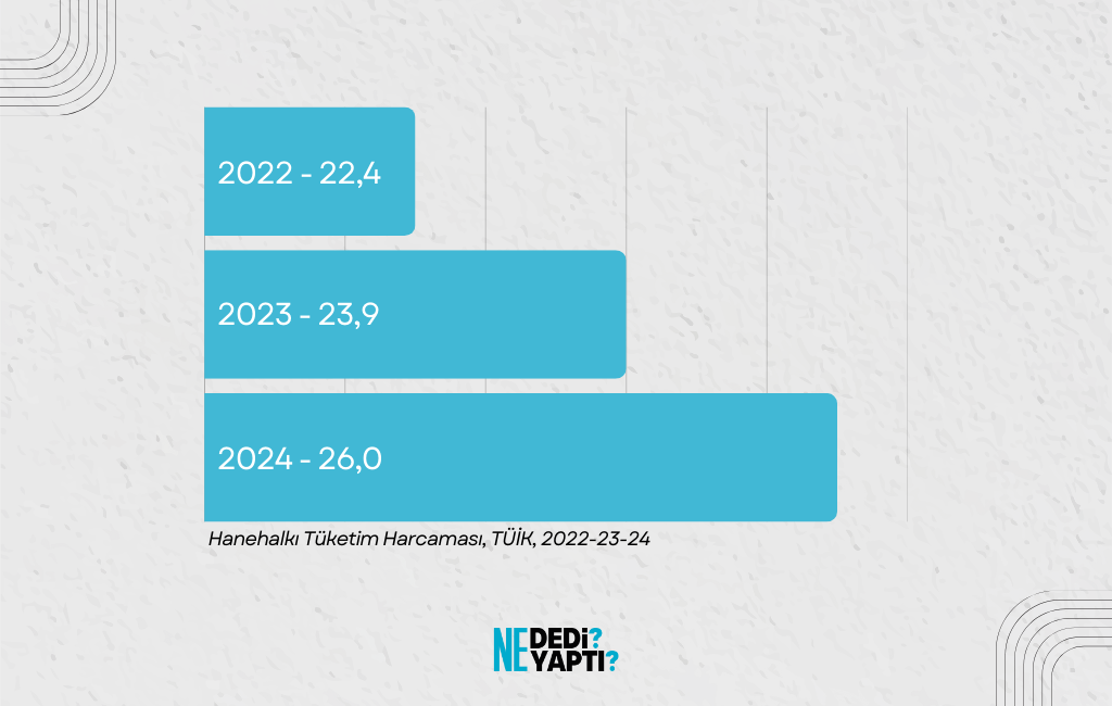 Konut piyasasında kronikleşen arz-talep dengesizliğinin en ağır yükünü kaçınılmaz olarak vatandaş sırtlanıyor. TÜİK’in hazırladığı ‘Hanehalkı Tüketim Harcaması’ araştırmalarına göre söz konusu dengesizliğin tetiklediği konut ve kira enflasyonu halkın belini her geçen yıl biraz daha fazla büküyor. 2022 yılında yüzde 22.4’lük bir gider kalemi olan ‘konut ve kira giderleri’, 2024 yılında yüzde 26’ya ulaştı ve istikrarlı bir şekilde artış ivmesini koruyor.