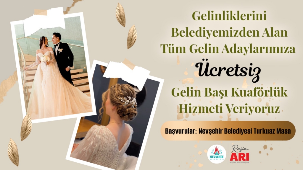 Belediye, Nevşehir’de yaşayan bütün gelin adaylarının Turkuaz Masa üzerinden alacakları randevuların akabinde ücretsiz olarak “Ücretsiz Gelin Başı Kuaförlük Hizmeti”nden istifade edebileceğini açıkladı.
